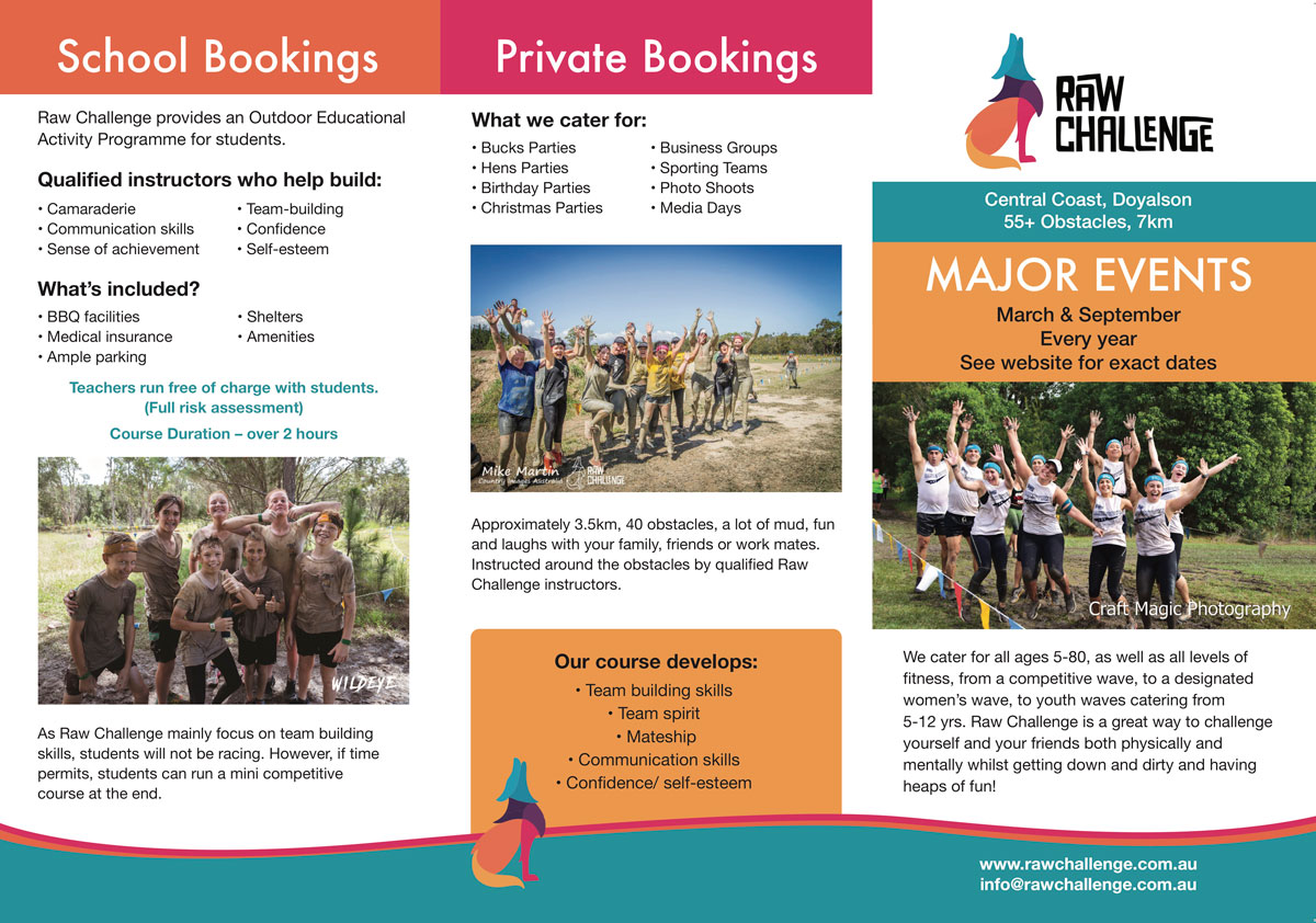 Raw Challenge is a permanent training facility, we also cater for sporting teams, schools and private groups throughout the whole year, please check School and Private bookings.
